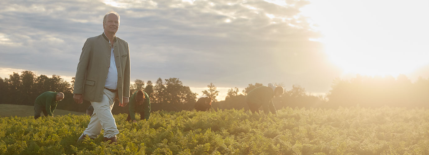 An encounter with the Swiss pioneer of organic-biological agriculture, Dr. Hans Müller, inspired him to adopt ecological production methods for fruit and vegetables. The first raw materials for HiPP products were grown on ecologically farmed fields from 1956 onwards. As a first step the family farm, Ehrensberger Hof near Pfaffenhofen, was wholly converted to organic farming.