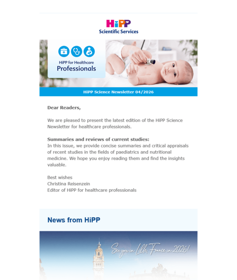 We are pleased to present you our HiPP science newsletter for healthcare professionals!